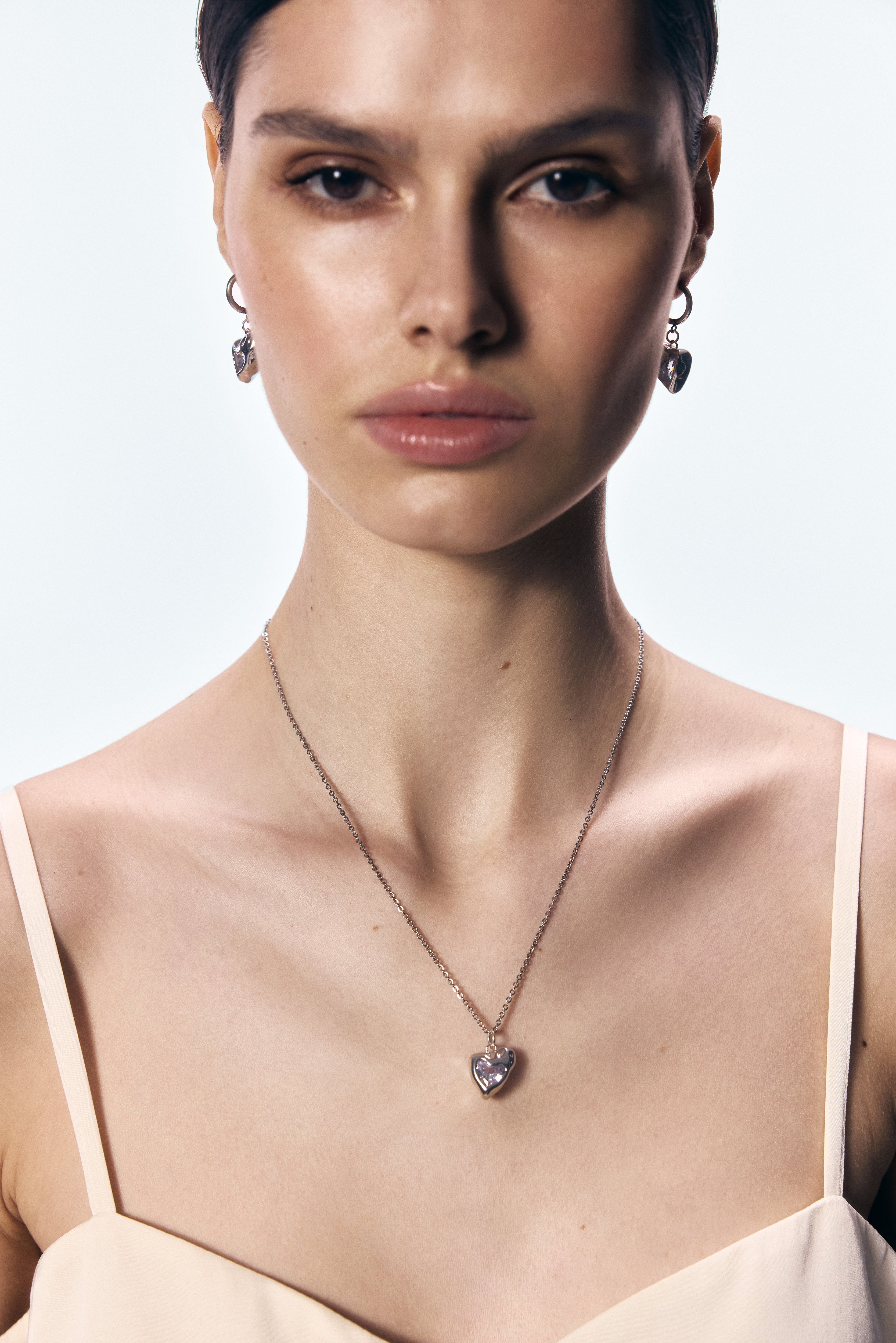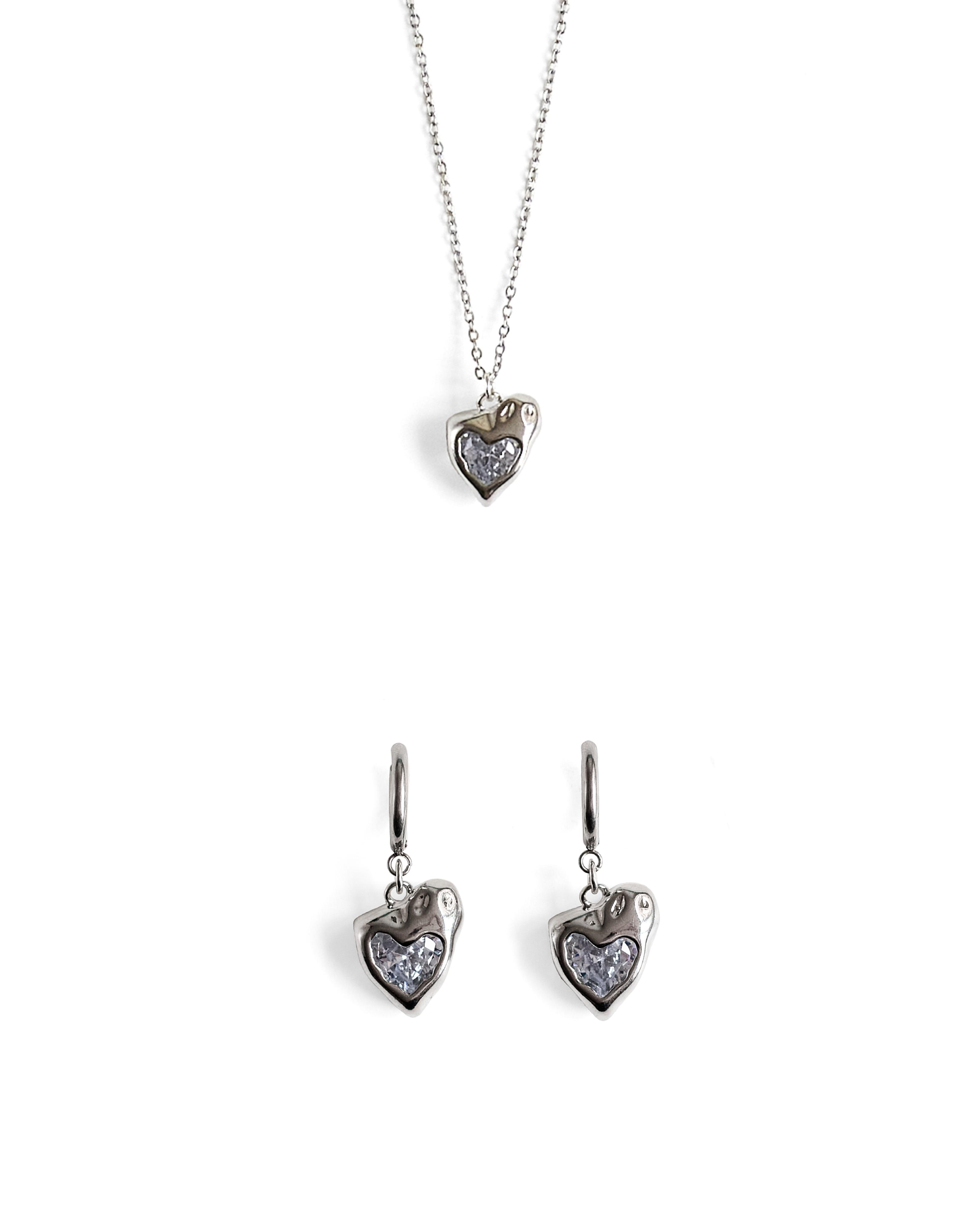 Комплект прикрас з фіанітами у формі серця. Кожен виріб також можна придбати окремо