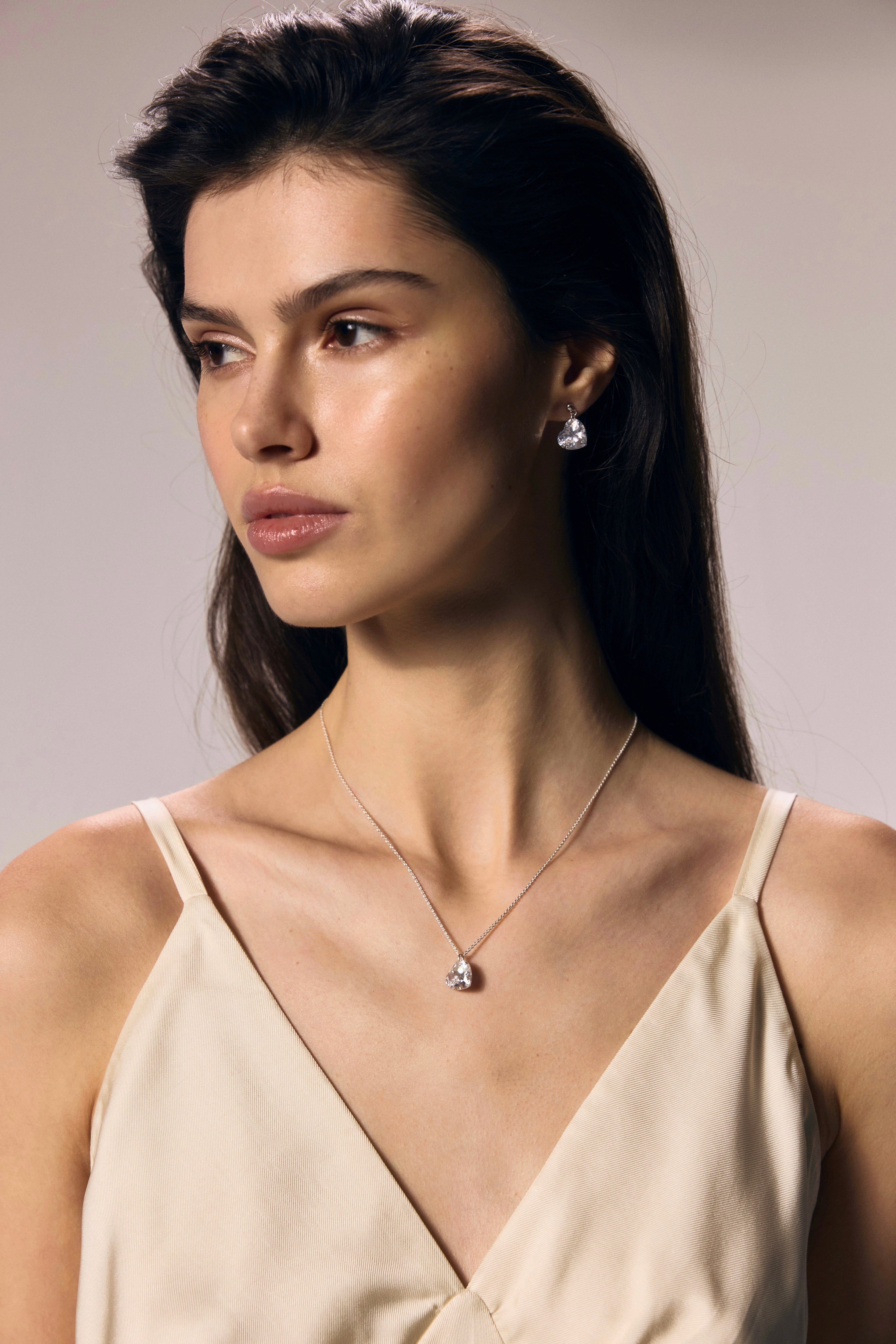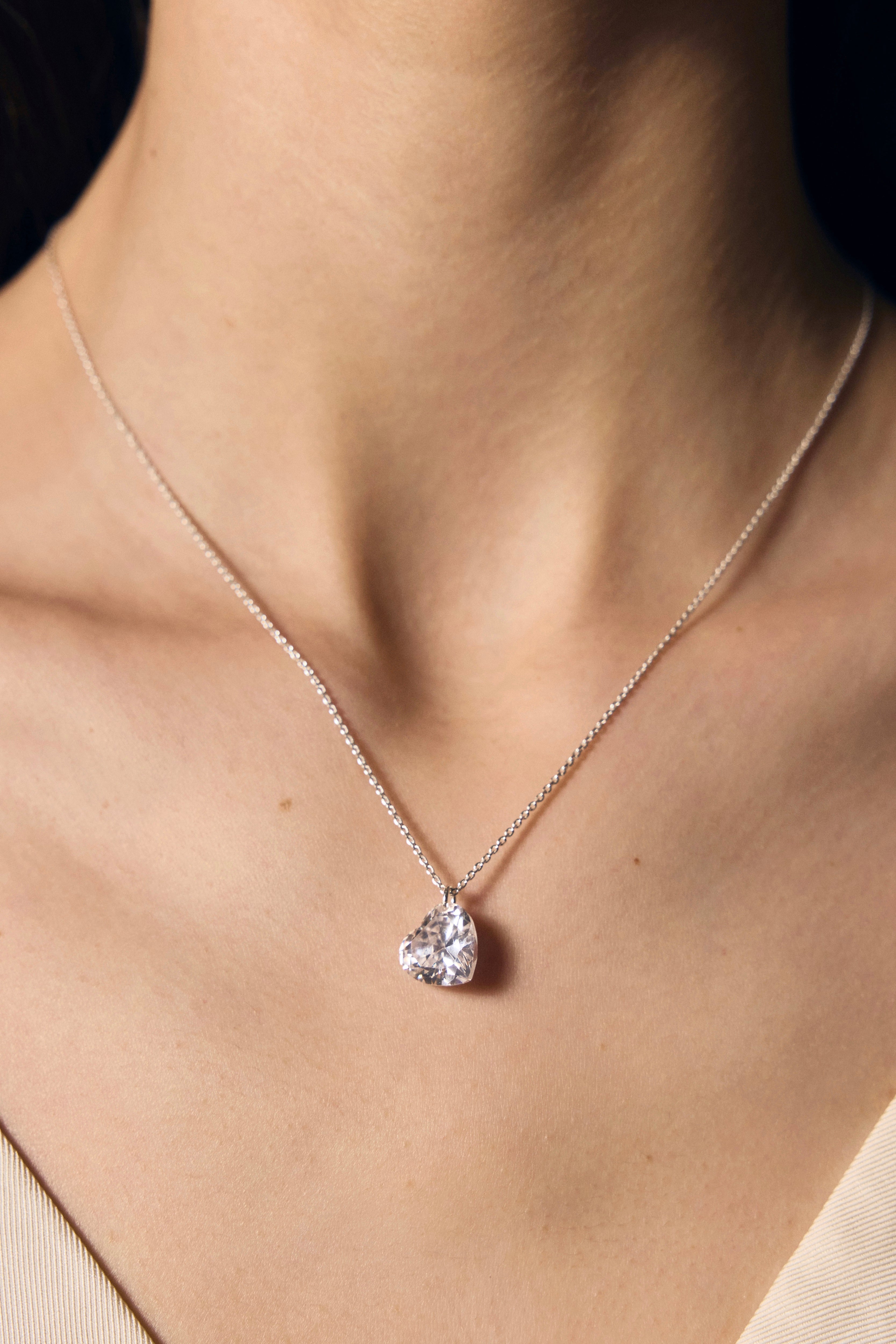 Кулон з вільним фіанітом у формі серця прозорого (білого) кольору