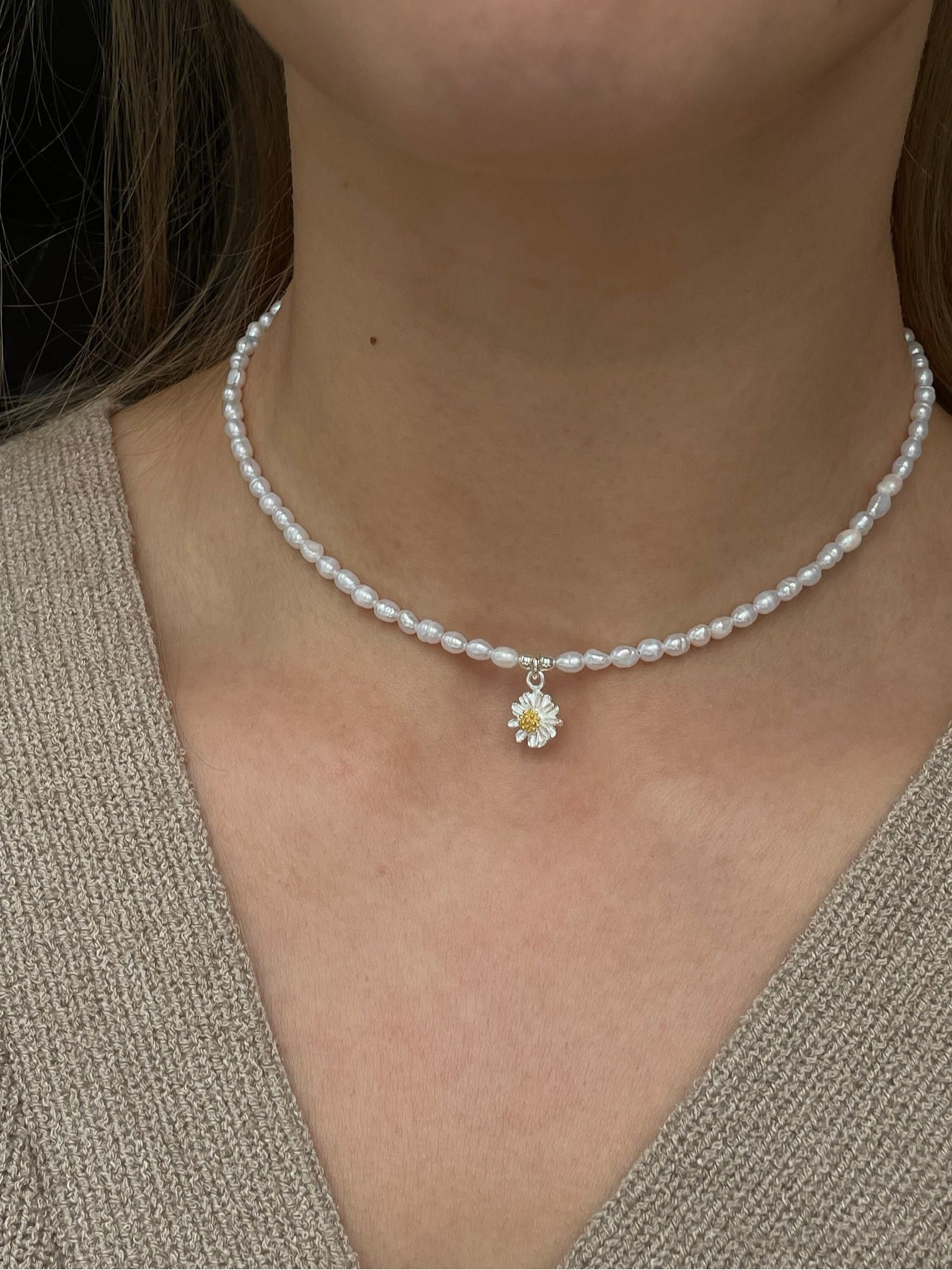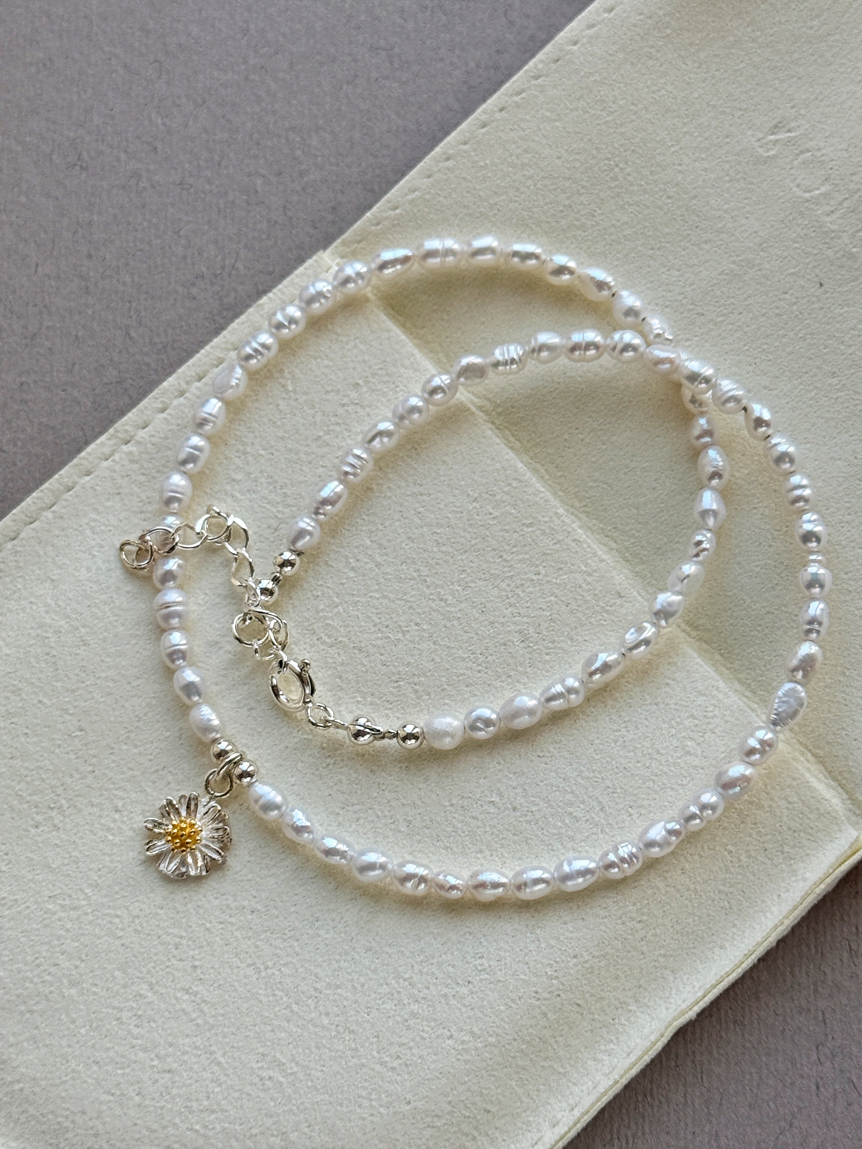 Витончене кольє з білих рисових перлин високої якості